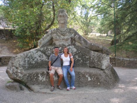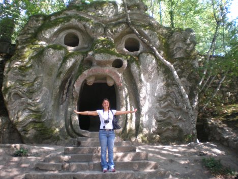 Tanto è lo stupore di fronte ad ogni scultura e alla storia che l’avvolge. Foto d’obbligo di fronte alla bizzarra casa pendente dove, entrando, si prova uno strano senso di squilibrio fisico; e alla faccia dell’orco, pronto ad accogliere chiunque al suo interno. “Ogni pensiero vola” recita il verso inciso sopra le fauci del mostro, parafrasi del noto verso dantesco “lasciate ogni speranza voi ch’entrate” e chiaro riferimento all’accesso alle porte degli inferi.