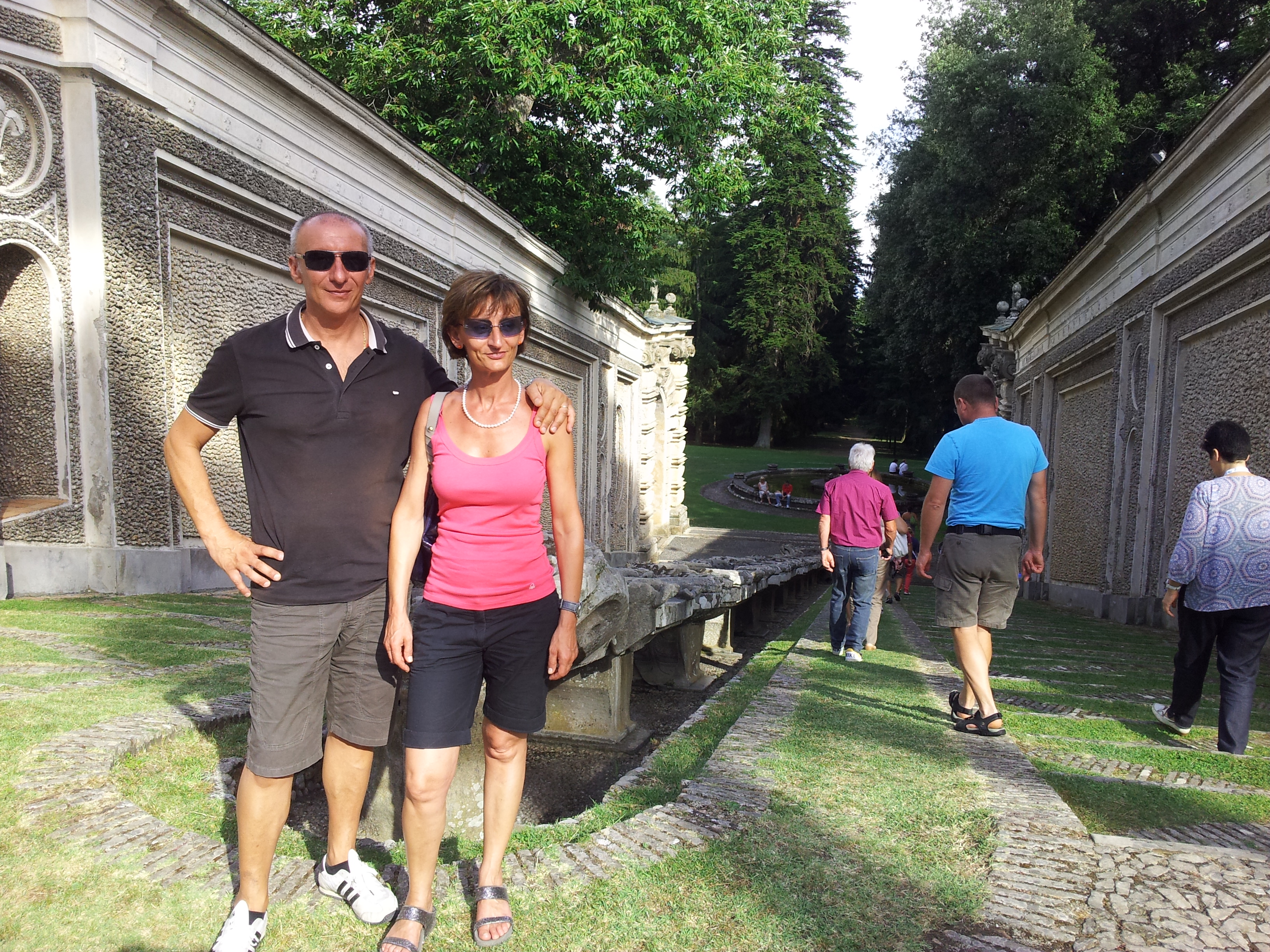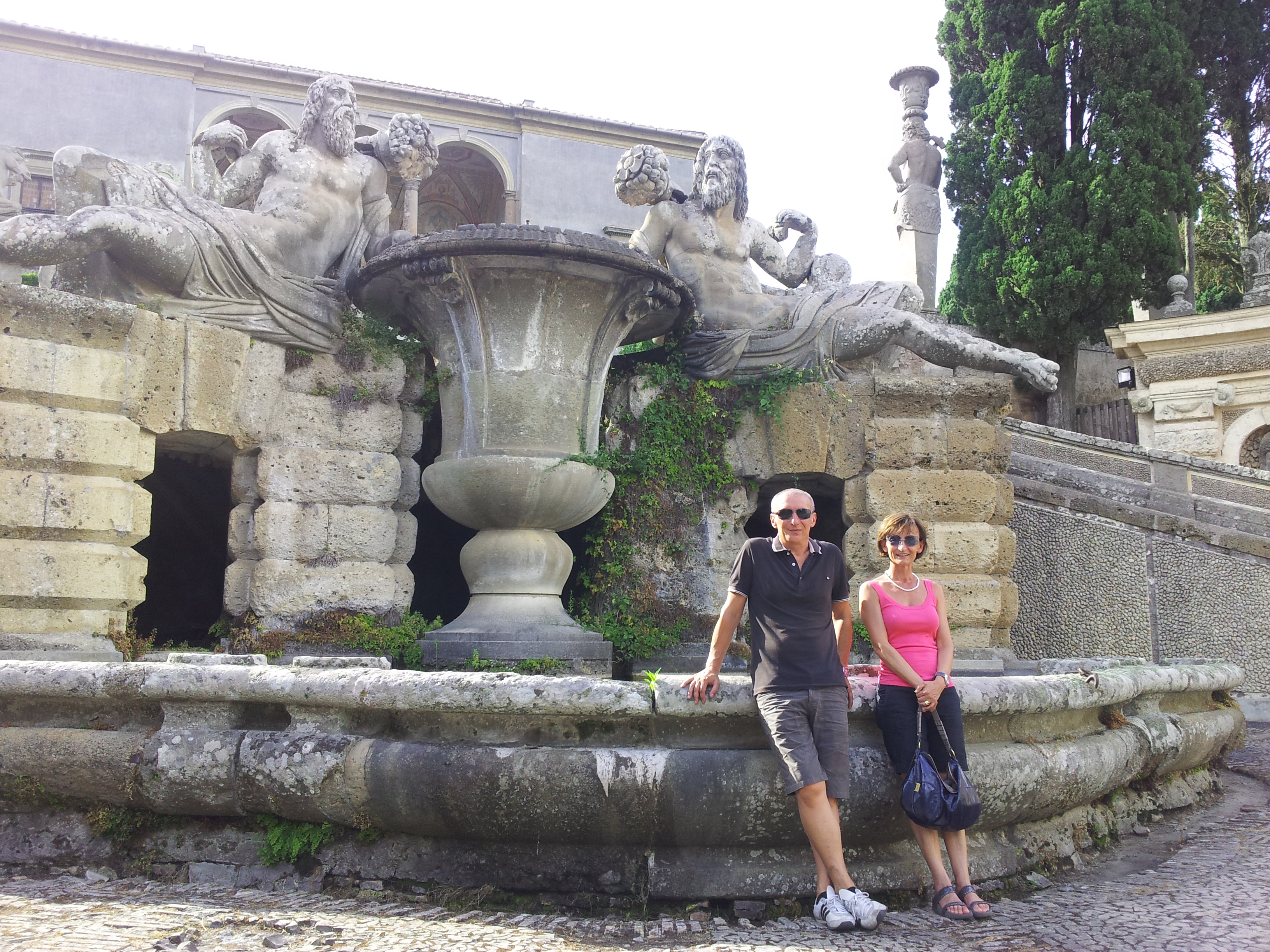 Dopo la loro prima tappa autonoma sul Lago di Bolsena, ci si vede l’indomani a Bagnaia per la visita di Villa Lante, dove l’aria è fresca e i giochi d’acqua delle fontane rendono il tutto molto piacevole. Proseguiamo per Viterbo e il centro medievale. L’intesa è già nata e ci si ferma tutti insieme per un fresco e veloce pranzo a base dei prodotti tipici: salumi, bruschette, mozzarelle viterbesi, olive, nellina e, ovviamente, Est! Est!! Est!!!
